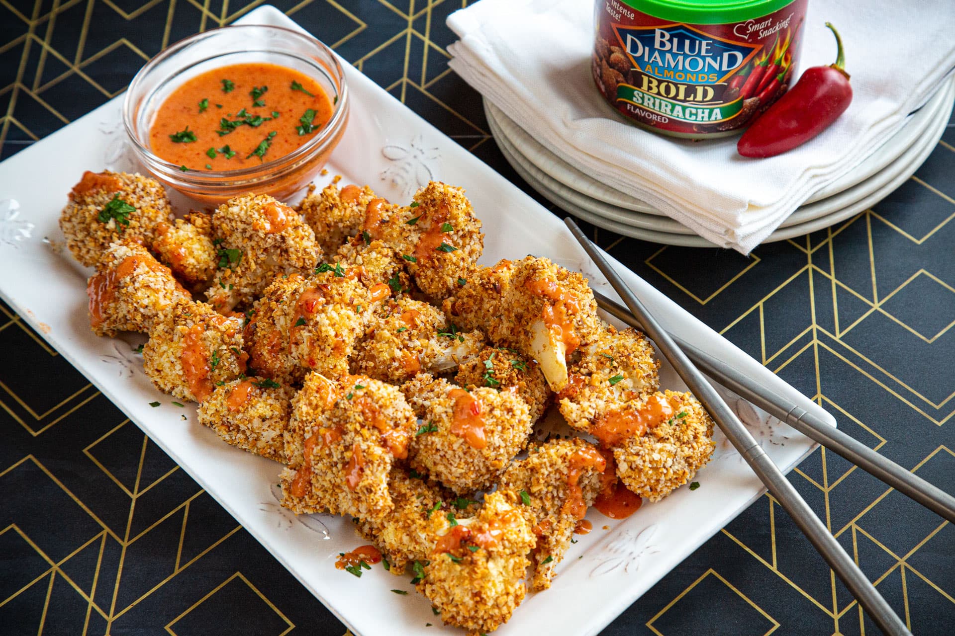 Sriracha almonds add a subtle heat and nuttiness to the panko breading, without sacrificing the crunch.