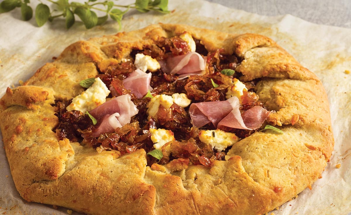 Spread onions on top of crust, leaving about a 1½-inch border. Gently fold the crust over the onions, pleating it on top of itself.