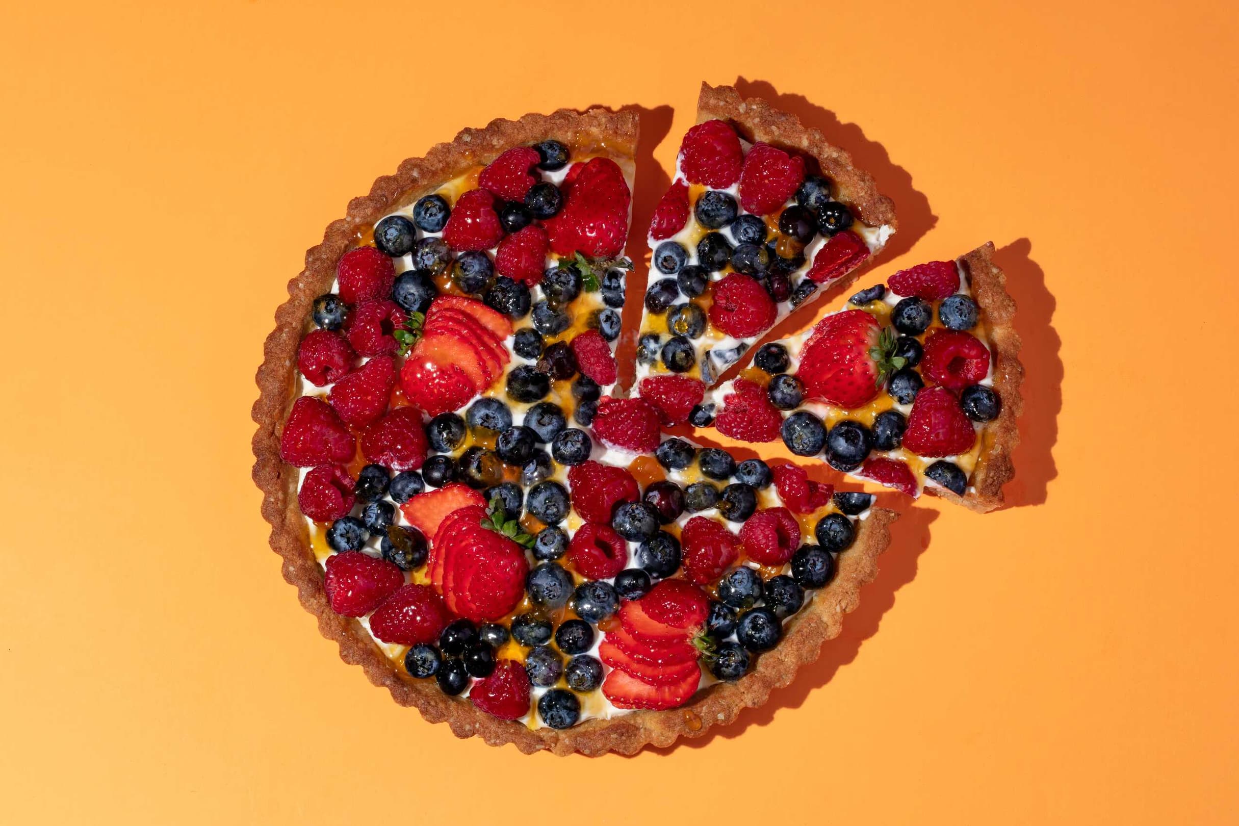Beat together cream cheese, yogurt and extract in a medium bowl and spread evenly into the tart crust. Top with berries and chill until ready to serve. Makes 8 servings.
