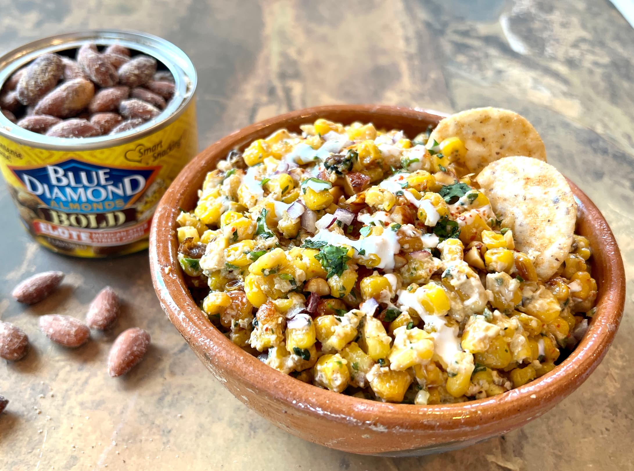 For extra flavor and crunch, stir additional chopped almonds into the esquites.