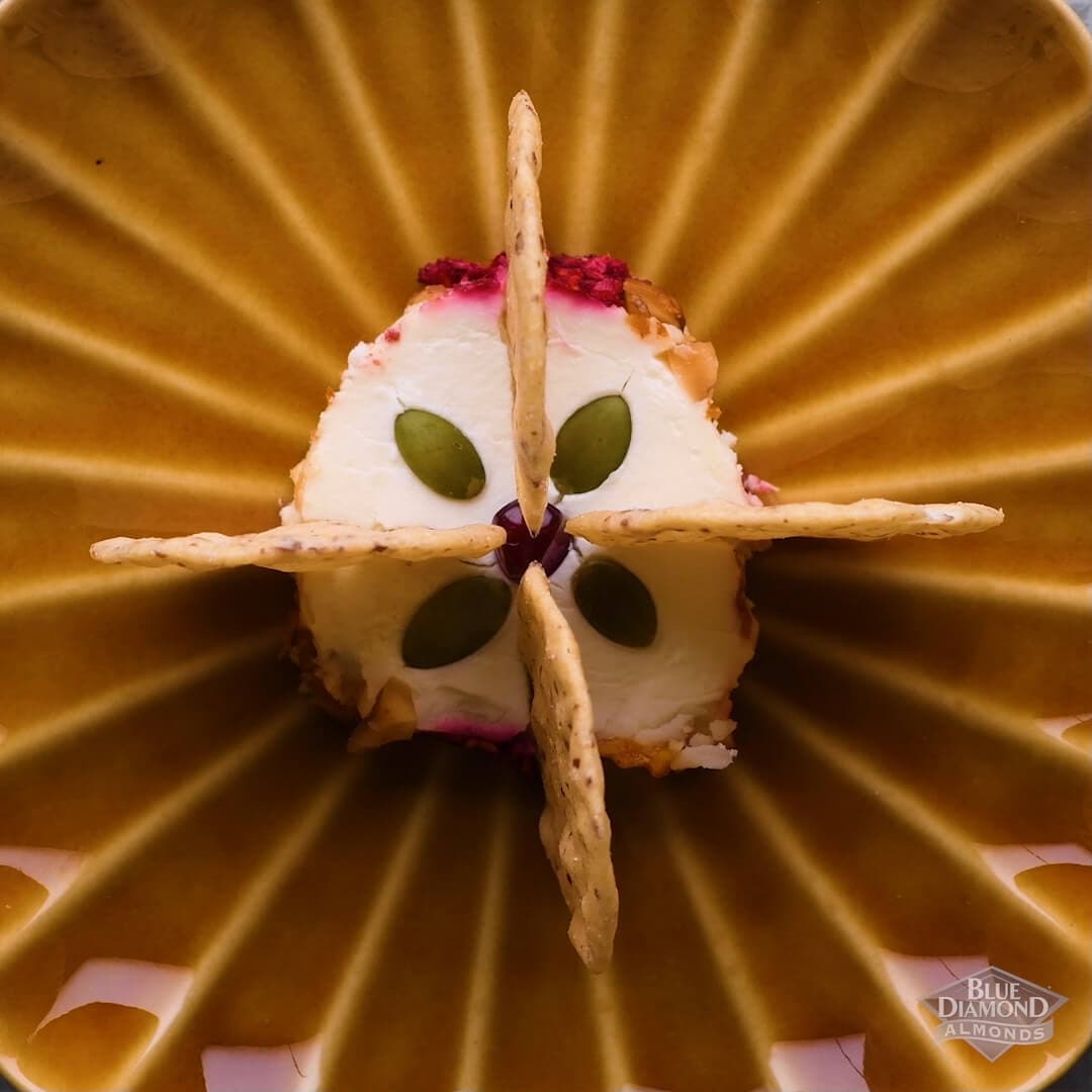 After letting goat cheese log soften (let sit at room temp for about 10 minutes), roll the log in the toppings. Then drizzle with honey and slice.