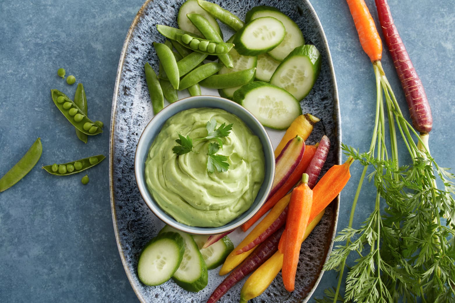 In a food processor, add avocados, yogurt, almondmilk, lemon juice, parsley and seasoning mix. Process until smooth.