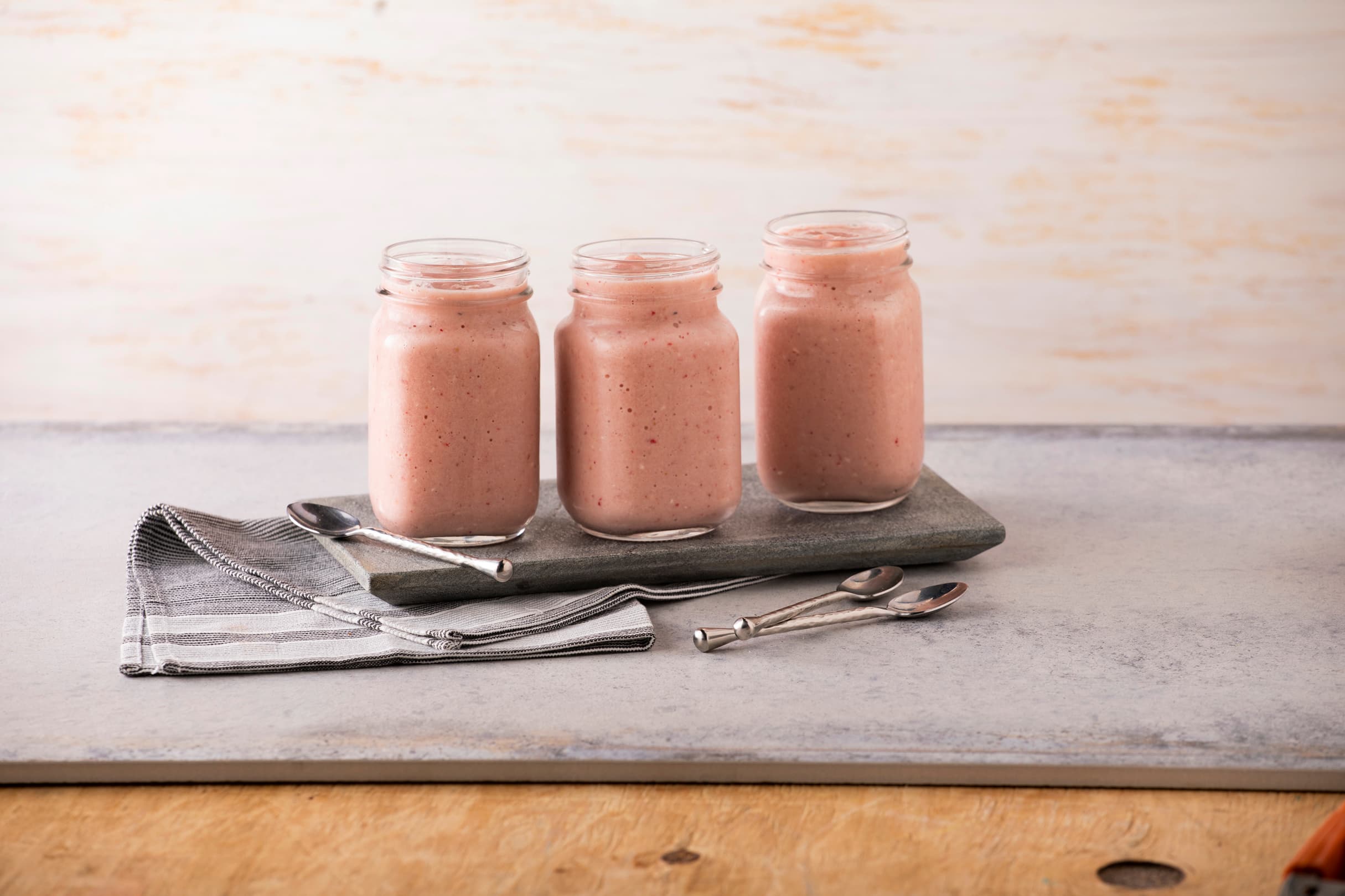 Place all ingredients in a high-powered blender and blend until smooth. Start with 1.5 cups of almondmilk and add more if needed to reach the desired consistency. Recipe makes about two servings.